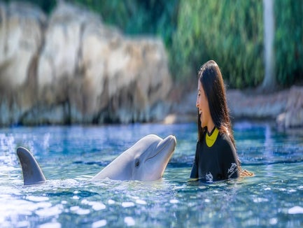 Upon arrival for Discovery Cove, you'll be welcomed by an exotic tropical paradise. One of the most popular highlights of Discovery Cove is the Dolphin Swim and Encounter, which allows you to swim and play with these lovable creatures. Learn about their behavior along with their anatomy and conservation.
