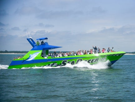 Race through the waters on this Myrtle Beach dolphin cruise! Get the best views of the local marine ecosystems, a close-up glimpse of dolphins playing in the water, and an incredible narrated sightseeing tour by Sea Racer Tours' expert guide of the Intracoastal Waterway. The fun never ends on dolphin adventure cruise in Myrtle Beach!